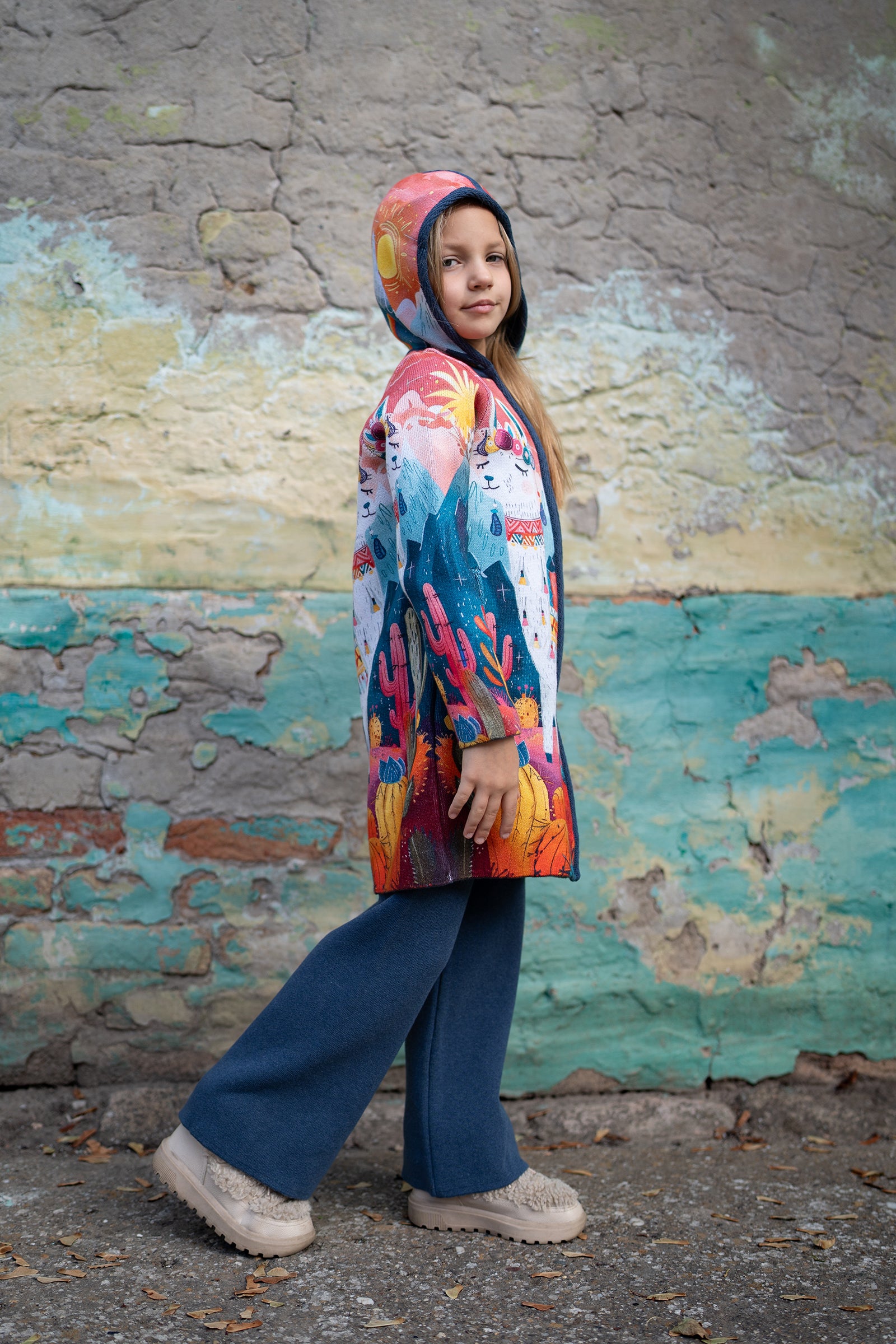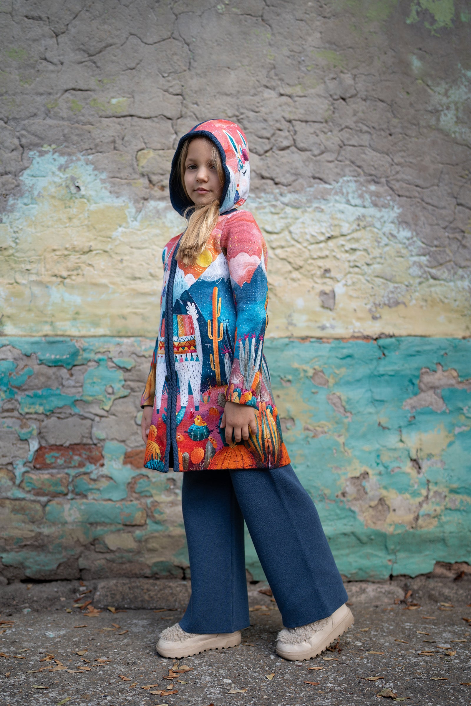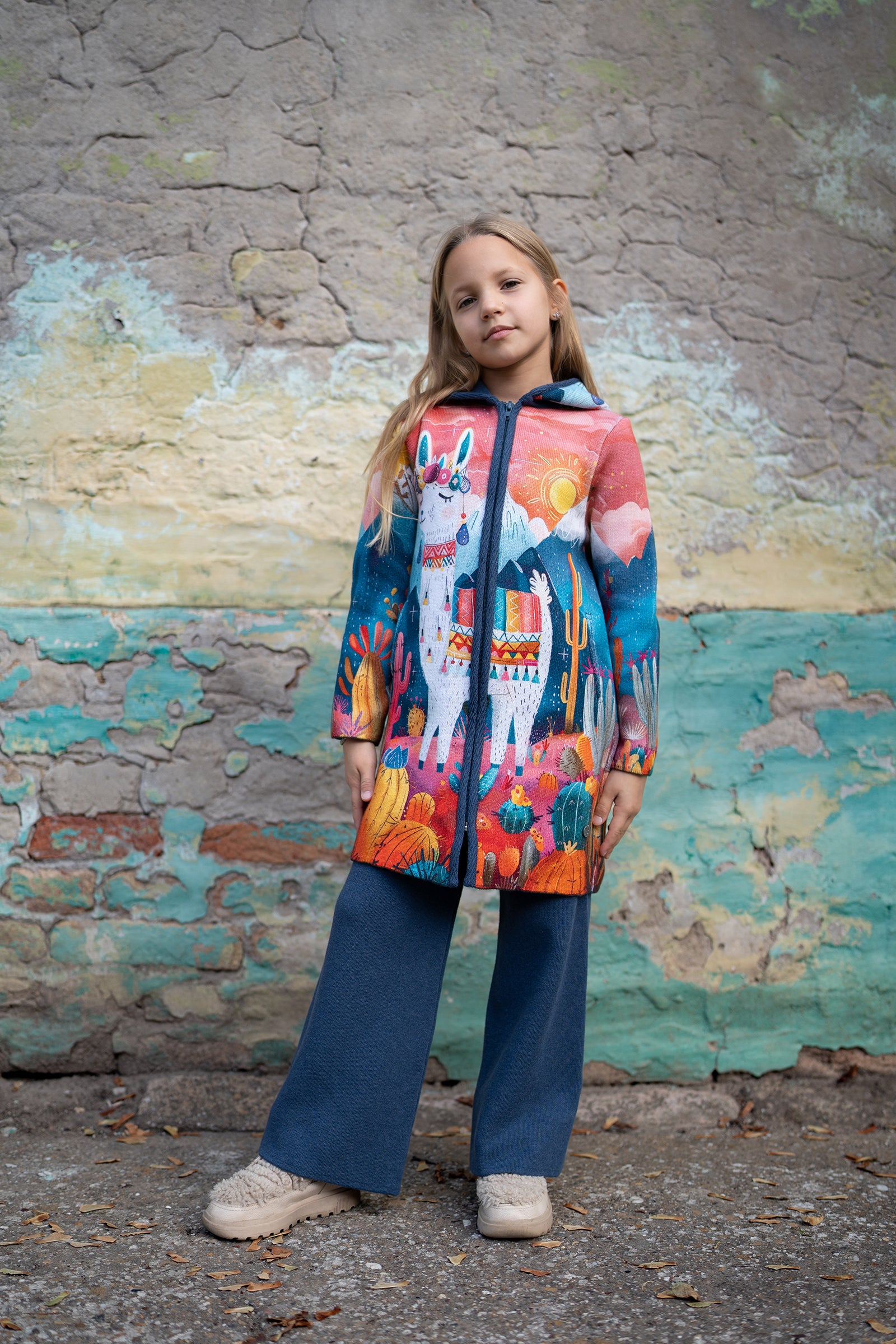 Kaputić za devojčice „Lama“ donosi boje pustinje i šarm Južne Amerike u razigranom, bajkovitom tonu. Ovaj štrikani kaput kombinuje udobnost i maštoviti dizajn, sa simpatičnom lamom u glavnoj ulozi, stvarajući nezaboravan komad garderobe za male zaljubljenice . . .