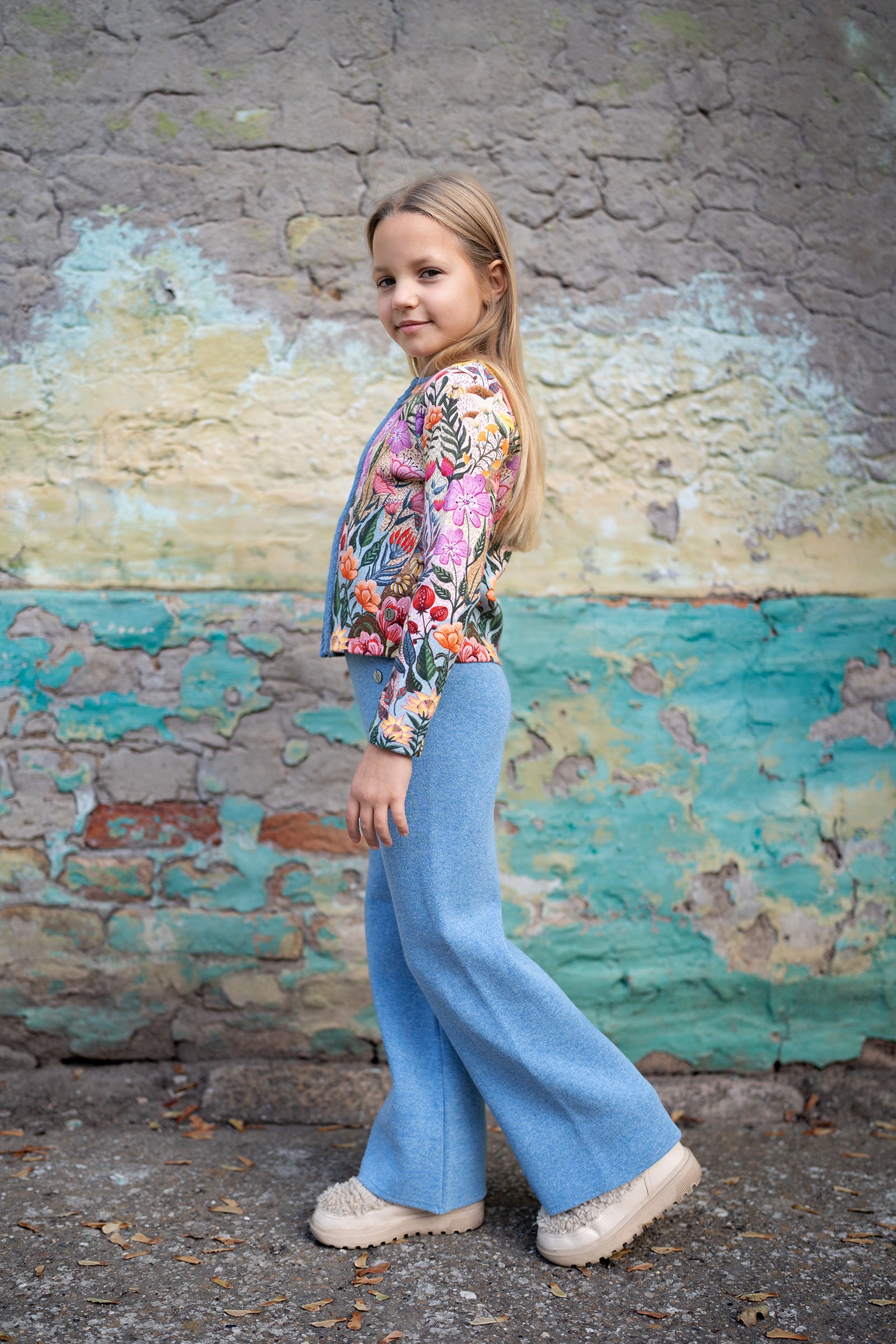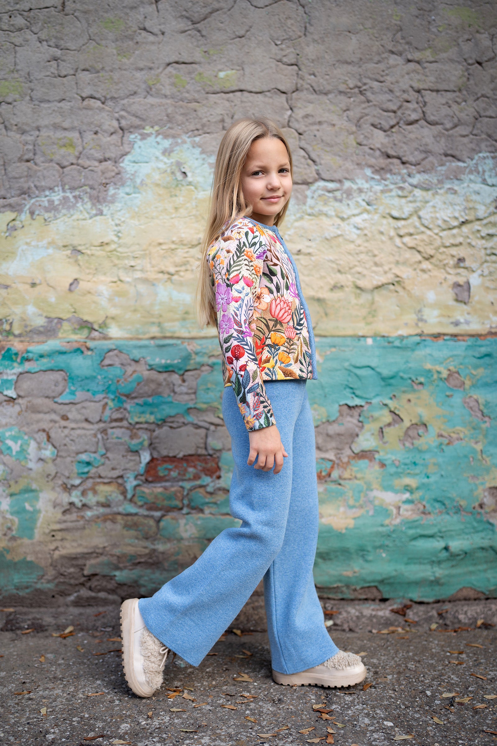 Štrikani tanki kardigan „Letnja bašta“ za devojčice spaja udobnost i cvetni, bajkovit dizajn – šareni kardigan koji lako podiže svaki outfit.